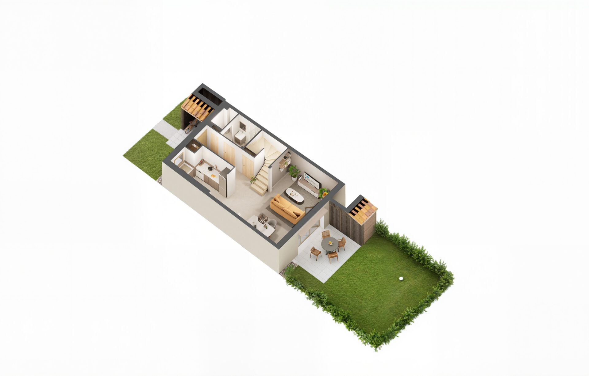 Chaque maison offre 3 chambres, un jardin clos, un abri vélo et deux emplacements de stationnement extérieurs. Construites selon la norme RE2020, elles garantissent une excellente performance énergétique et un confort durable.
